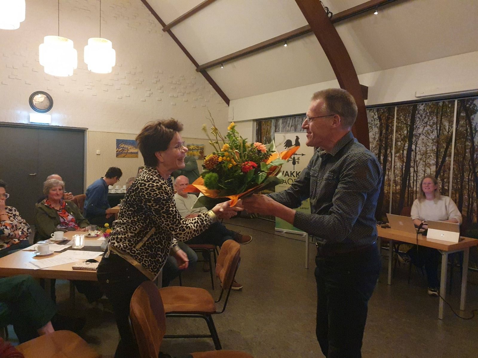 Op het eind van de vergadering kwam als verrassing kernwethouder voor Laren Marja Eggink naar voren. Zij bedankte Richard voor de fijne samenwerking en namens de gemeente bood zij hem een fles wijn in een mooie kist met een persoonlijke boodschap aan. Hierna sloot Richard onder groot applaus voor de laatste keer als voorzitter de Algemene Ledenvergadering van Wakker Laorne af.